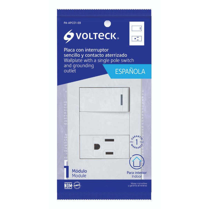 Volteck PA-APCO1-EB spagnolo bianco interruttore a muro 1 interruttore 1-contatto piastra di montaggio 1-Mod
