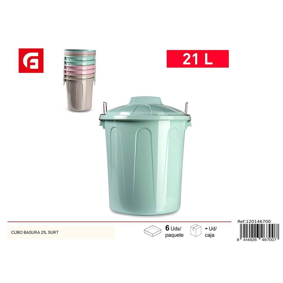 Cestino per Rifiuti Vrm 21L con Coperchio, per Riciclaggio, Uso Interno e Ufficio, Cilindrico in HDPE