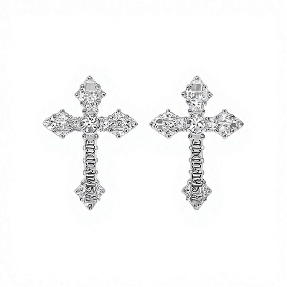 Vsmundce Gold Cross Stud Earrings 925 Silver Crystal Rhinestone Brilliant Cut Prong Setting Religious Christian Unisex Jewelry