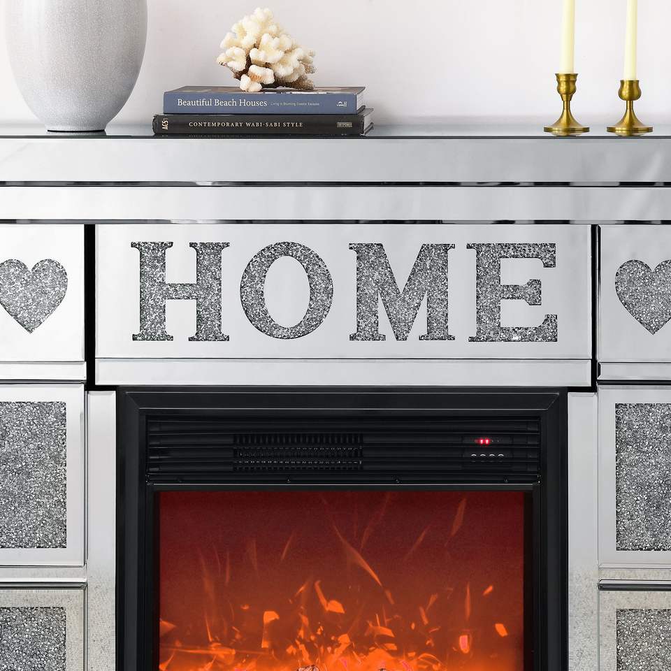 Mobiletto per Caminetto Elettrico in Acrilico con Specchio Diamantato, 46'' x 12.6'' x 41'', Porta TV Integrato