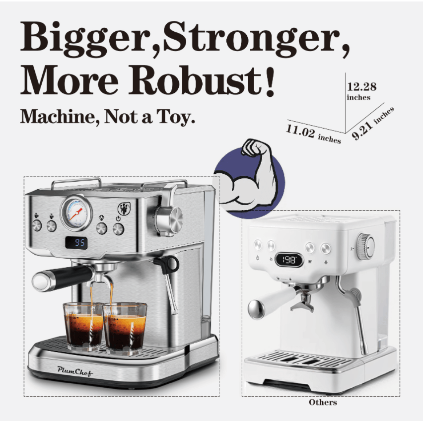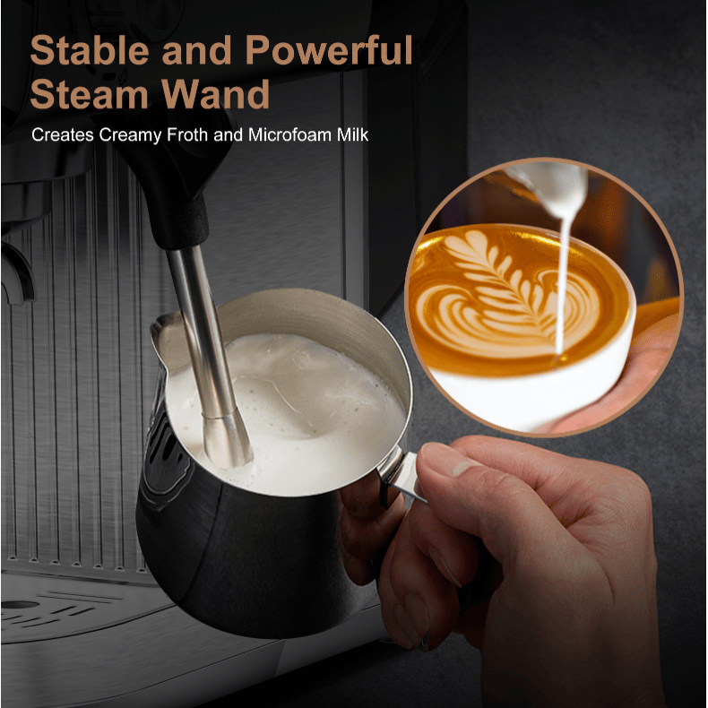 W1002P292436 Macchina da Caffè Espresso Professionale Semiautomatica 1350W 20 Bar con Montalatte, Monodose per Caffè Concentrato