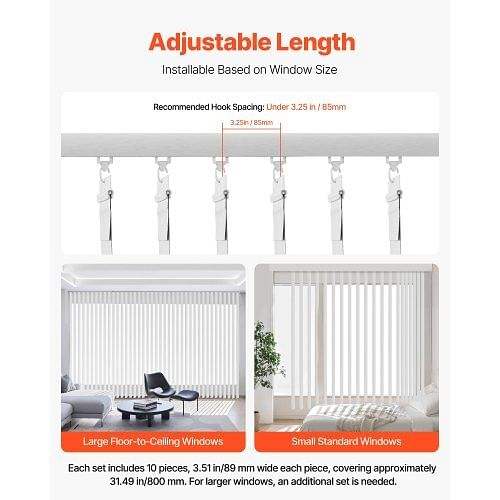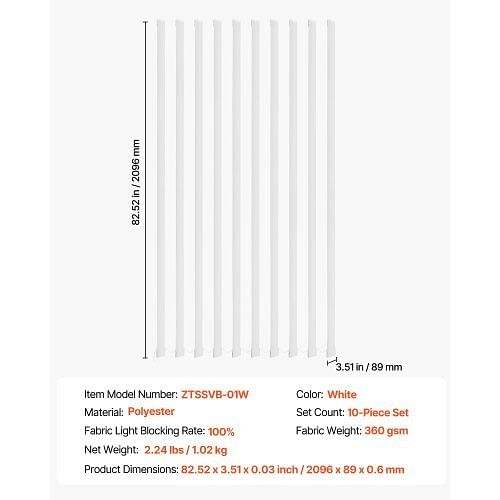W2B 10-Piece Vertical Blind Replacement Slats Adjustable Venetian Blinds Smooth Surface Coastal Style for Built-In Installation