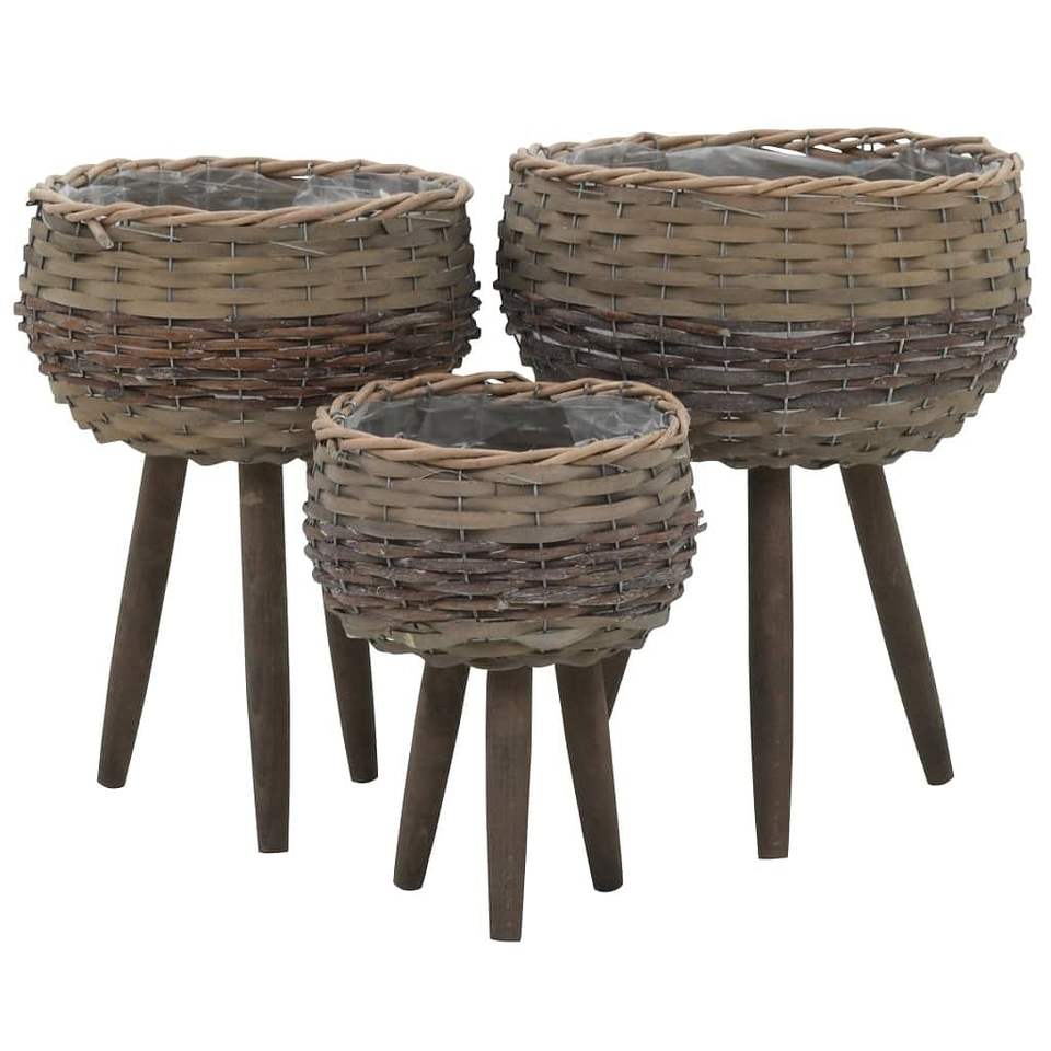W2B VidaXL Luxury Brown Wicker Plant Set of 3-Small Medium Large Flower Pots for Living Room for Indoor Planting