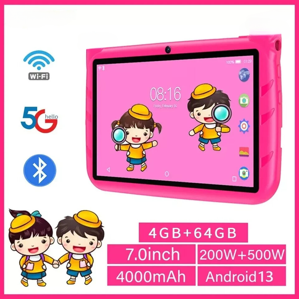 Tablet per Bambini W7 da 7 Pollici, Android 11, 12GB RAM, 256GB ROM, Doppia Fotocamera, 4000mAh, 5G WiFi, Certificato CE FCC, Laptop Educativo per Bambini, Tablet PC WiFi