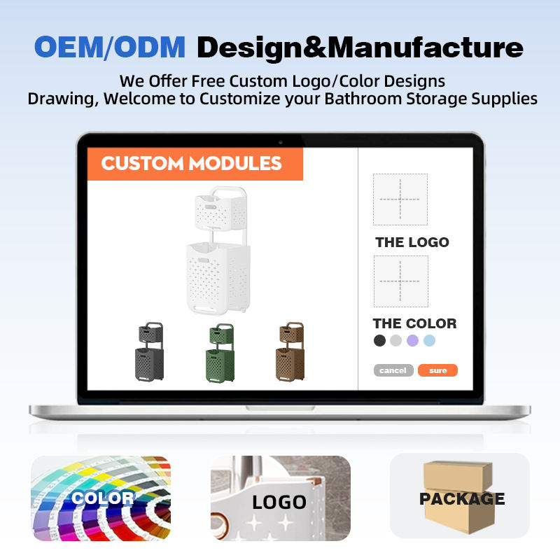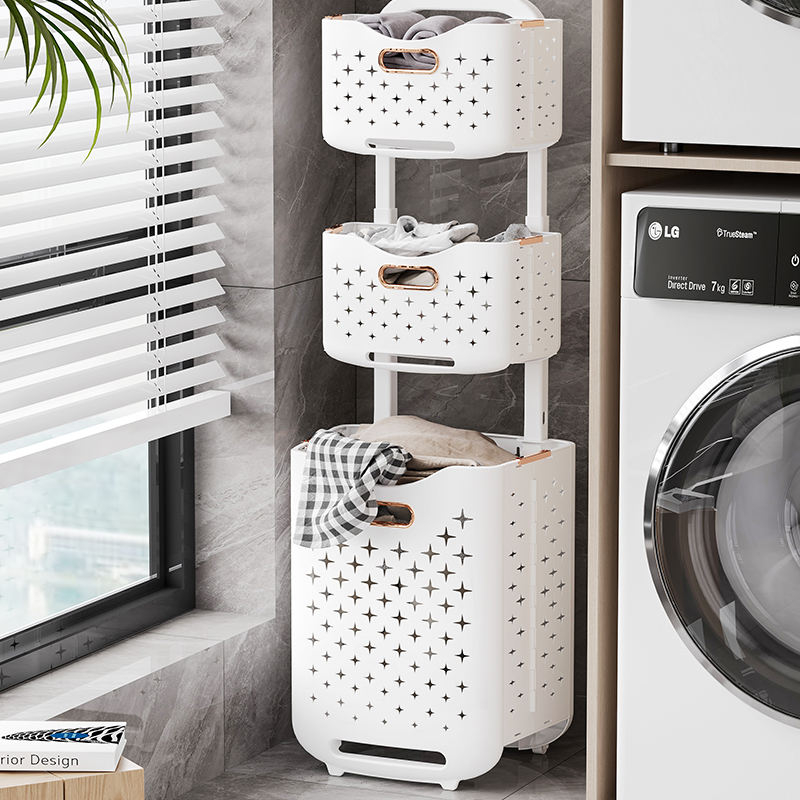 Cesto per Bucato WANUO a 2/3 Ripiani Pieghevole, Traspirante e Antimuffa, in Plastica con Ruote