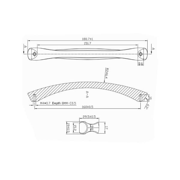WB Furniture 160mm Drill Distance Aluminum Die-Cast Curved Design Stainless Steel Look Handle Screws-Available 96mm 128mm Sizes