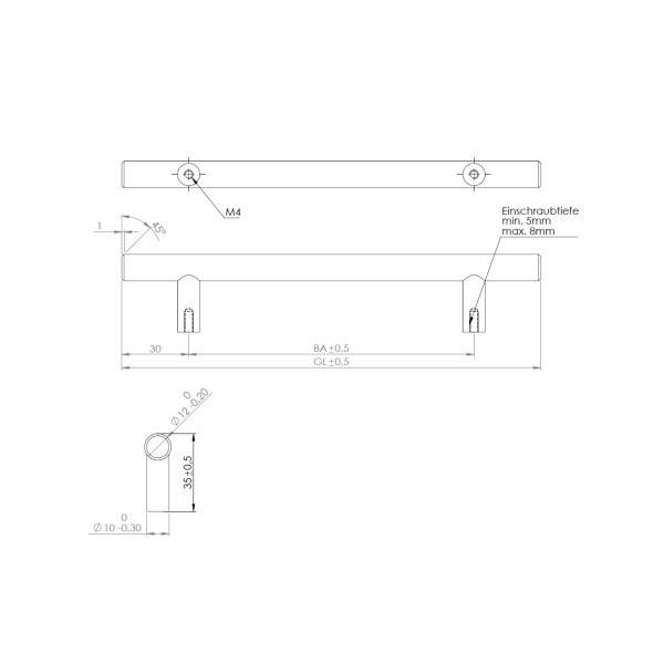 WB Luxury Stainless Steel Look Stangengriff Knob 128mm Hole Spacing Furniture Handle 188mm Length Ø12mm Including Screws