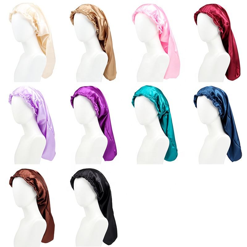 Cappellino per parrucchieri in raso WD-A1266 capelli lunghi con treccia grande per dormire la notte berretto da notte e bevande cosmetici da donna