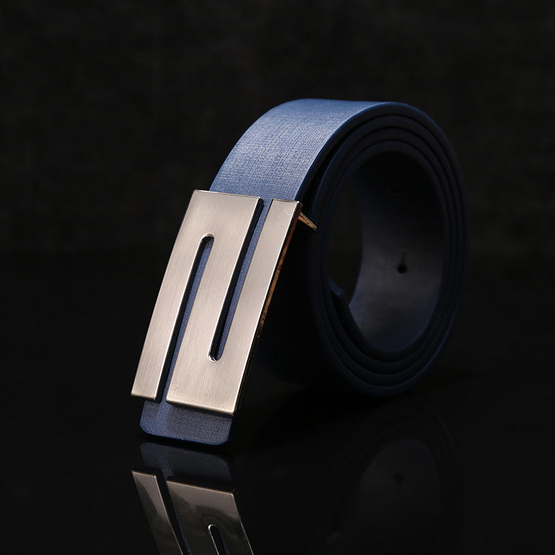 WDD352 uomo lettera S forma fibbia in lega moda PU cinture in vita donna Casual fibbia liscia cinture Unisex nuovo Design pantaloni cinture