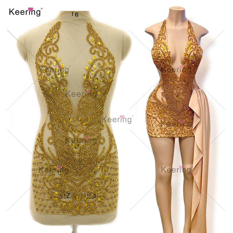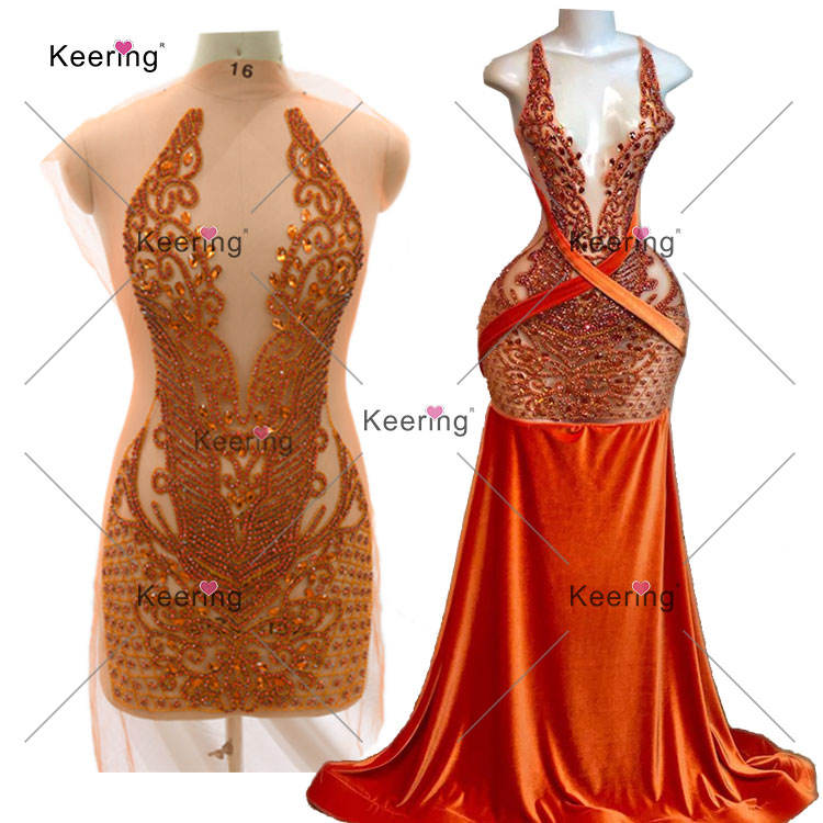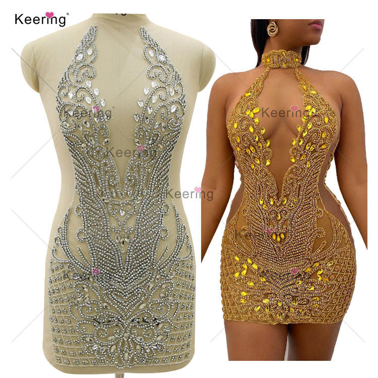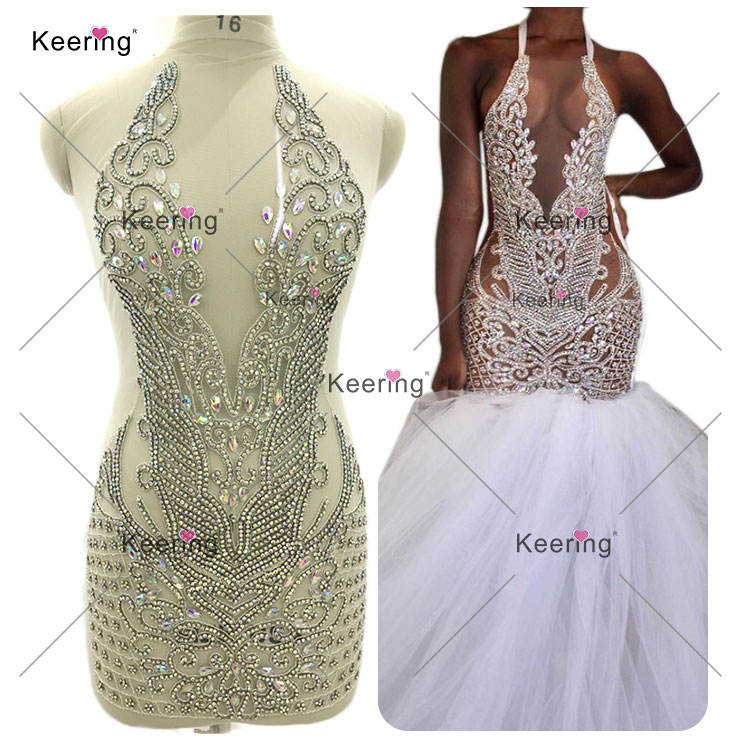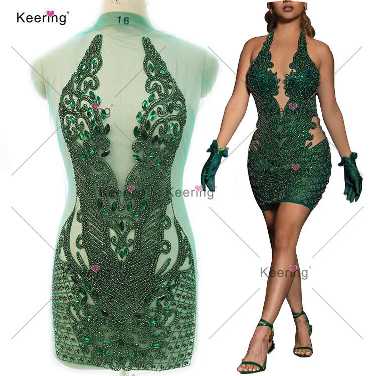 WDP-395 di fascia alta per cucire abiti da sposa da donna verde cristallo con disegno di fiori Keering strass Applique