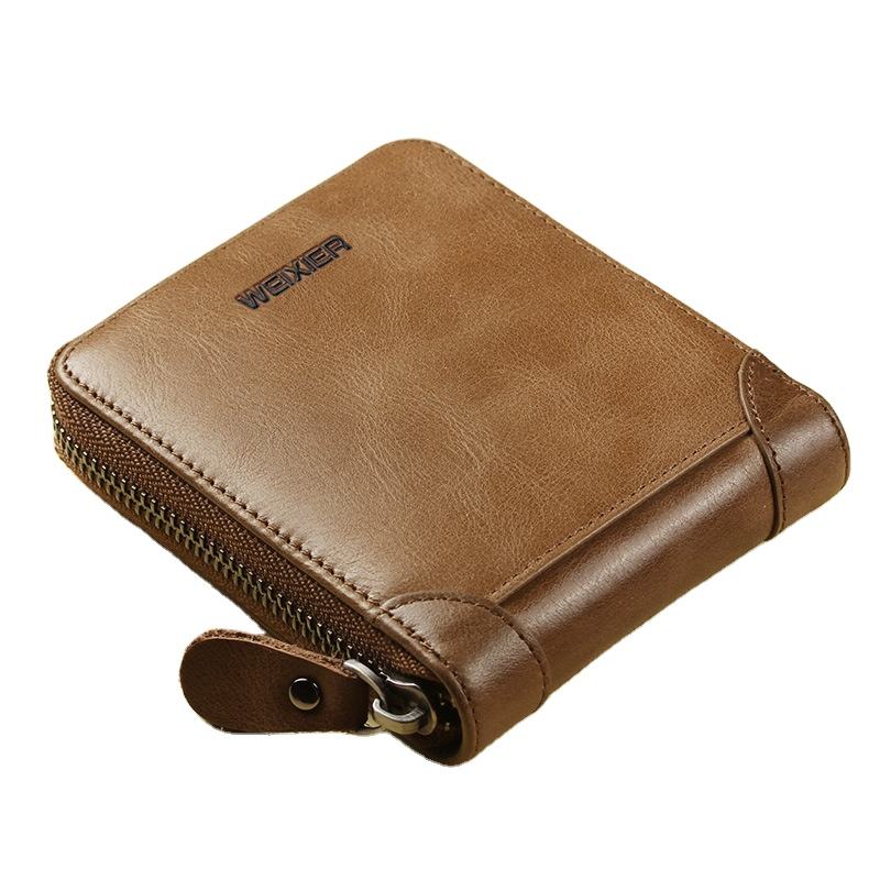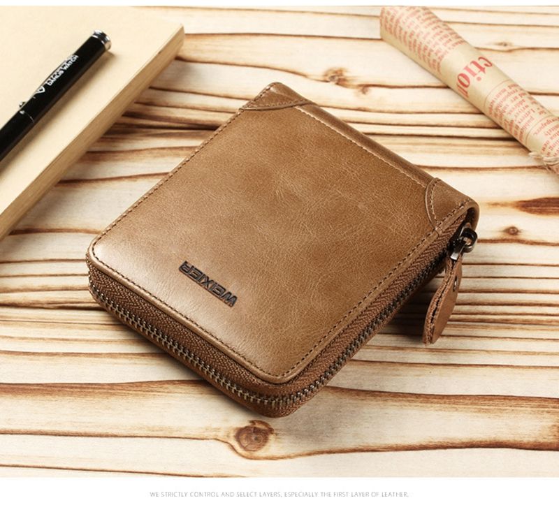 Portafoglio Retrò da Uomo WEIXIER in Pelle, Borsellino Corto con Cerniera, Porta Carte, Fermasoldi, Portafoglio Maschile di Alta Qualità