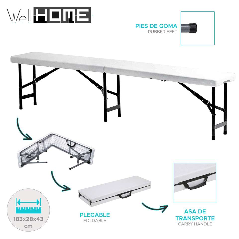 WELL HOME 1.83 Meters Patio Bench Briefcase-Shaped Polyethylene and Metal Frame Bench