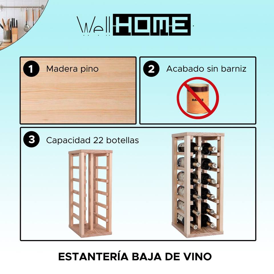 Portabottiglie da Scaffale WELL HOME per 12 Bottiglie, Finitura Non Verniciata, Accessorio Elegante e Resistente per Bar Domestico