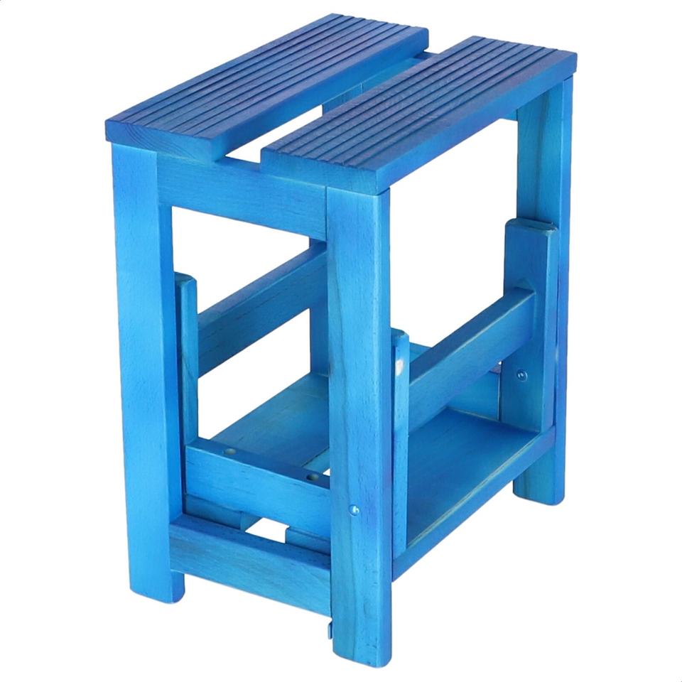 WELL HOME 2-Step Blue Wood Stool 32x23x40 cm Finished in Blue for Home or Office Use
