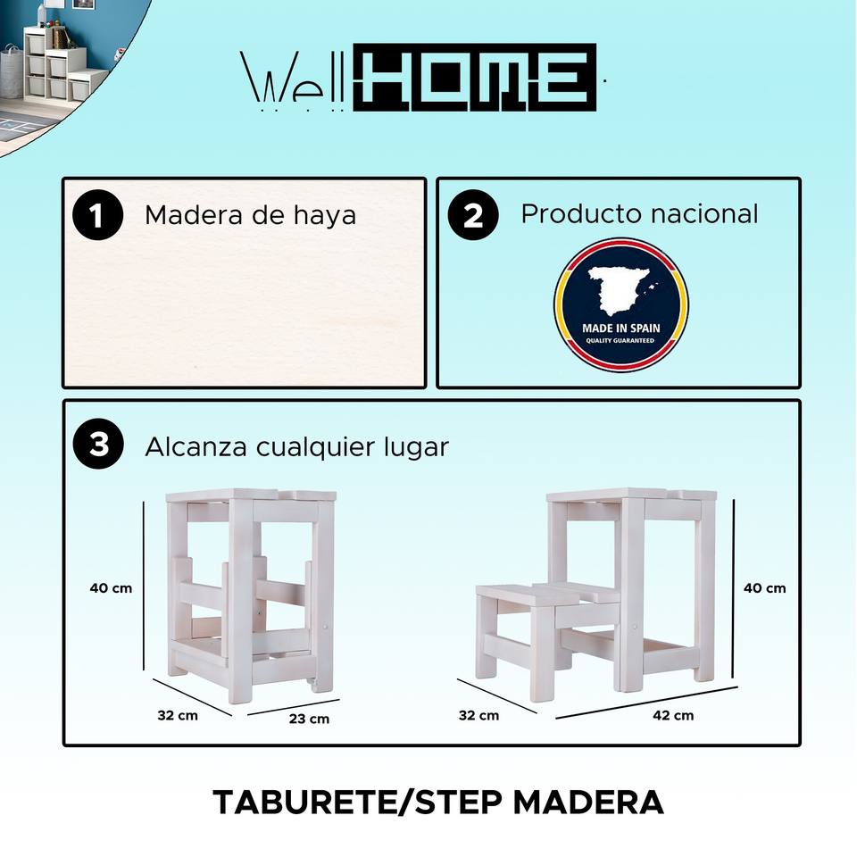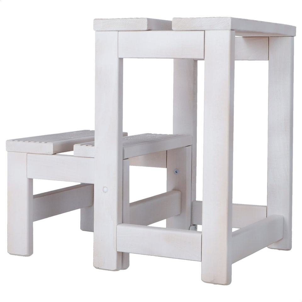 Sgabello a 2 Gradini in Legno WELL HOME, Finitura Bianca 32x23x40 cm, Categoria Prodotti Pouf e Sgabelli