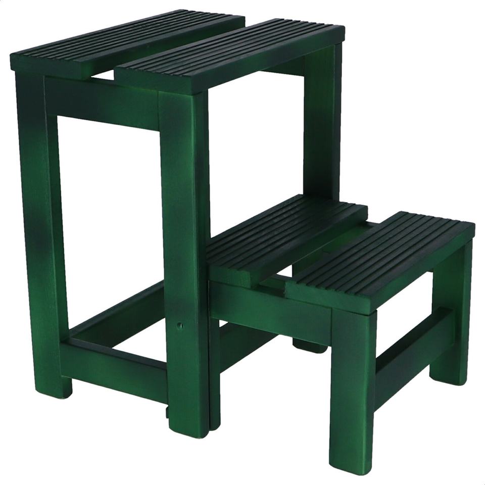 WELL HOME Sgabello a 2 gradini in legno con finitura verde 32x23x40 cm
