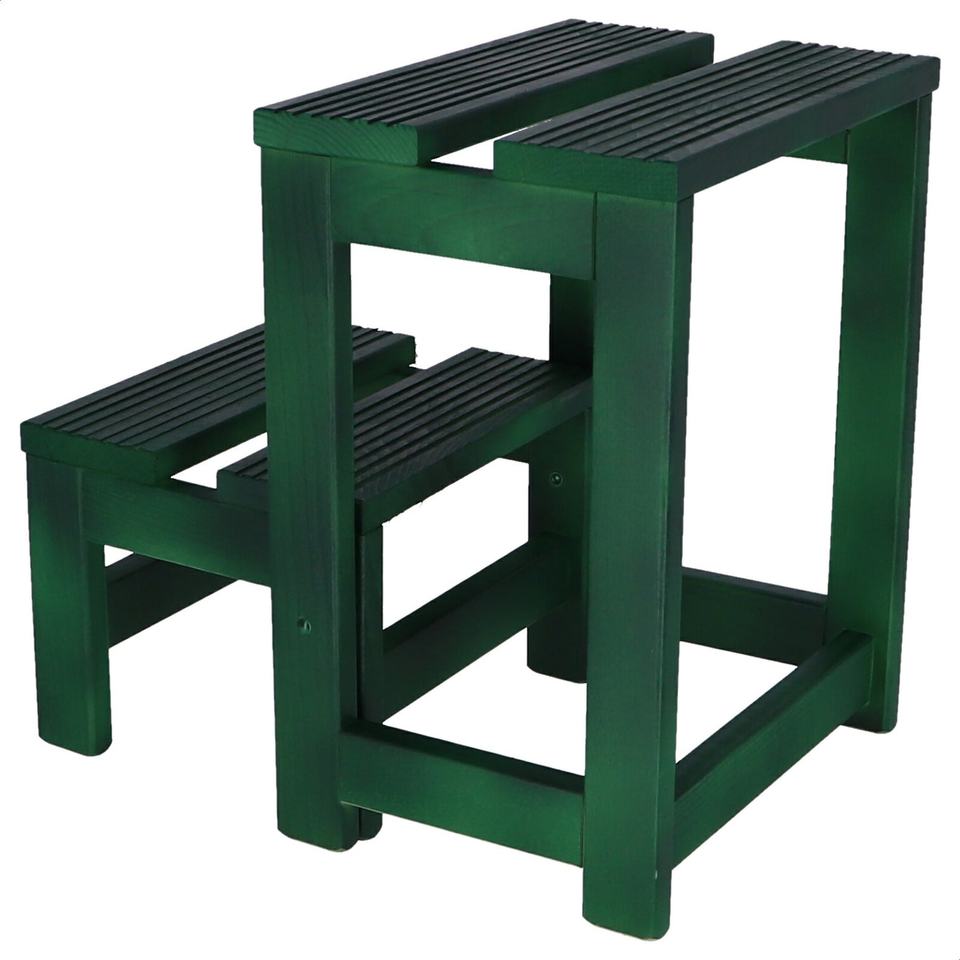 WELL HOME Sgabello a 2 gradini in legno con finitura verde 32x23x40 cm