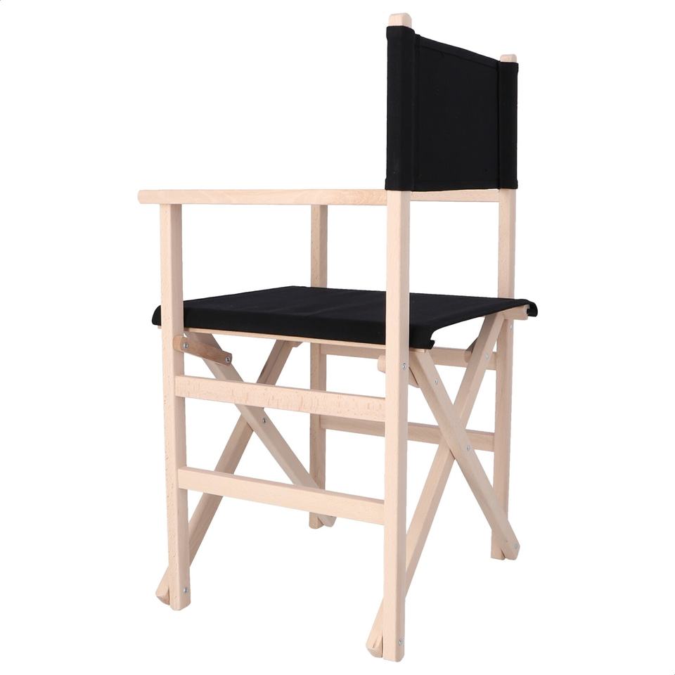 Sedia da Regista WELL HOME in Legno di Faggio con Finitura Non Verniciata e Tela Nera 51x46x86 cm