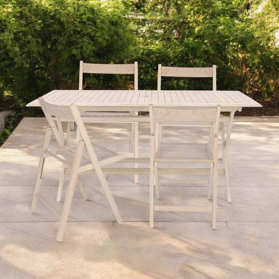 WELL HOME FURNITURE & DECORATION Set di 4 Sedie da Giardino in Legno di Faggio Non Verniciato Design BAS