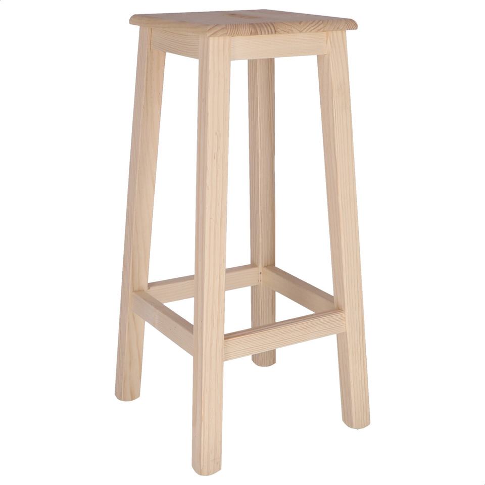 WELL HOME High Square Wooden Bar Stool Varnished Finish 32x32x70 cm