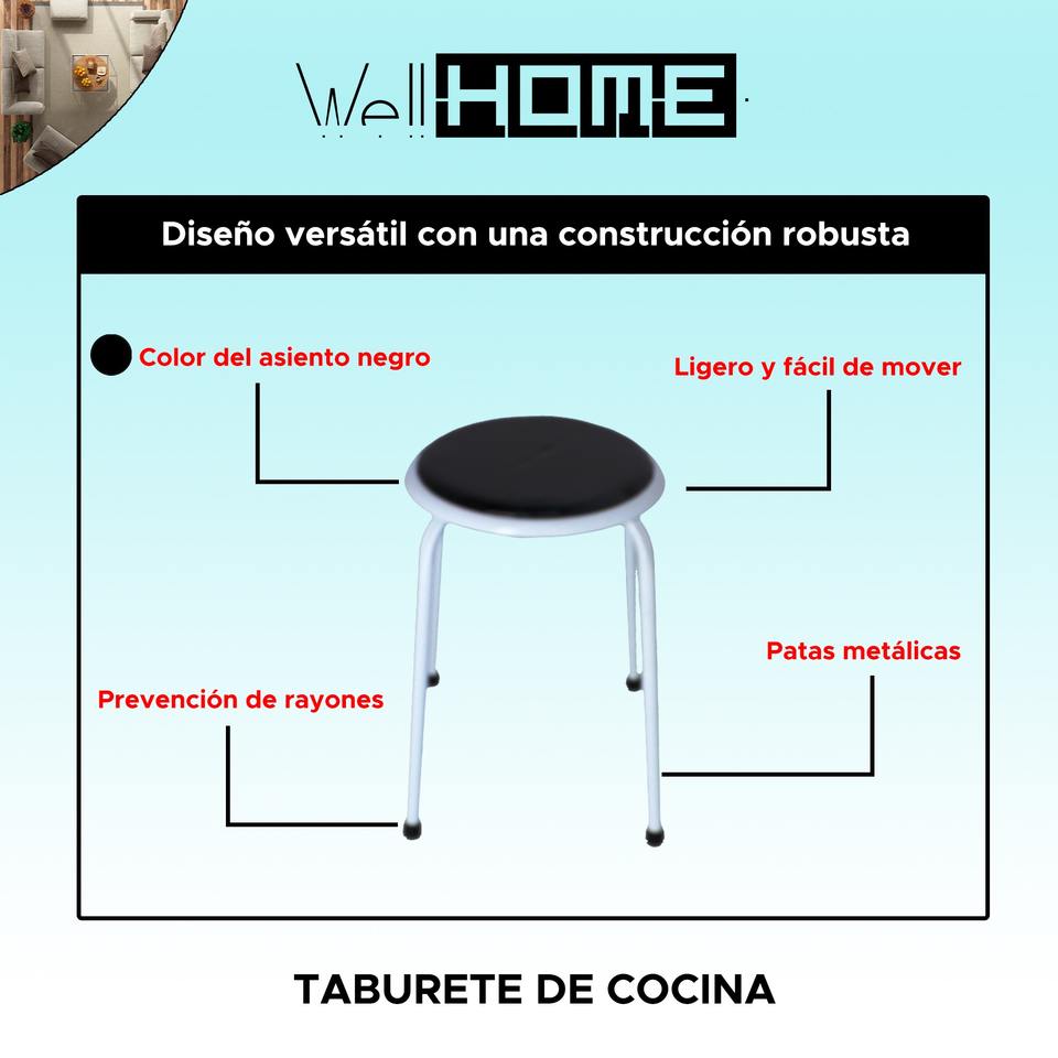 Sgabello da Cucina WELL HOME con Gambe in Metallo Nero 30.5x30.5x42.5 cm, Sgabello da Bar