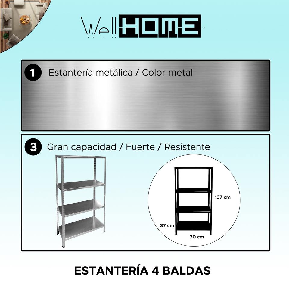 WELL HOME Metal Shelving Unit 4-Shelf Garage Storage 70x37x137 cm