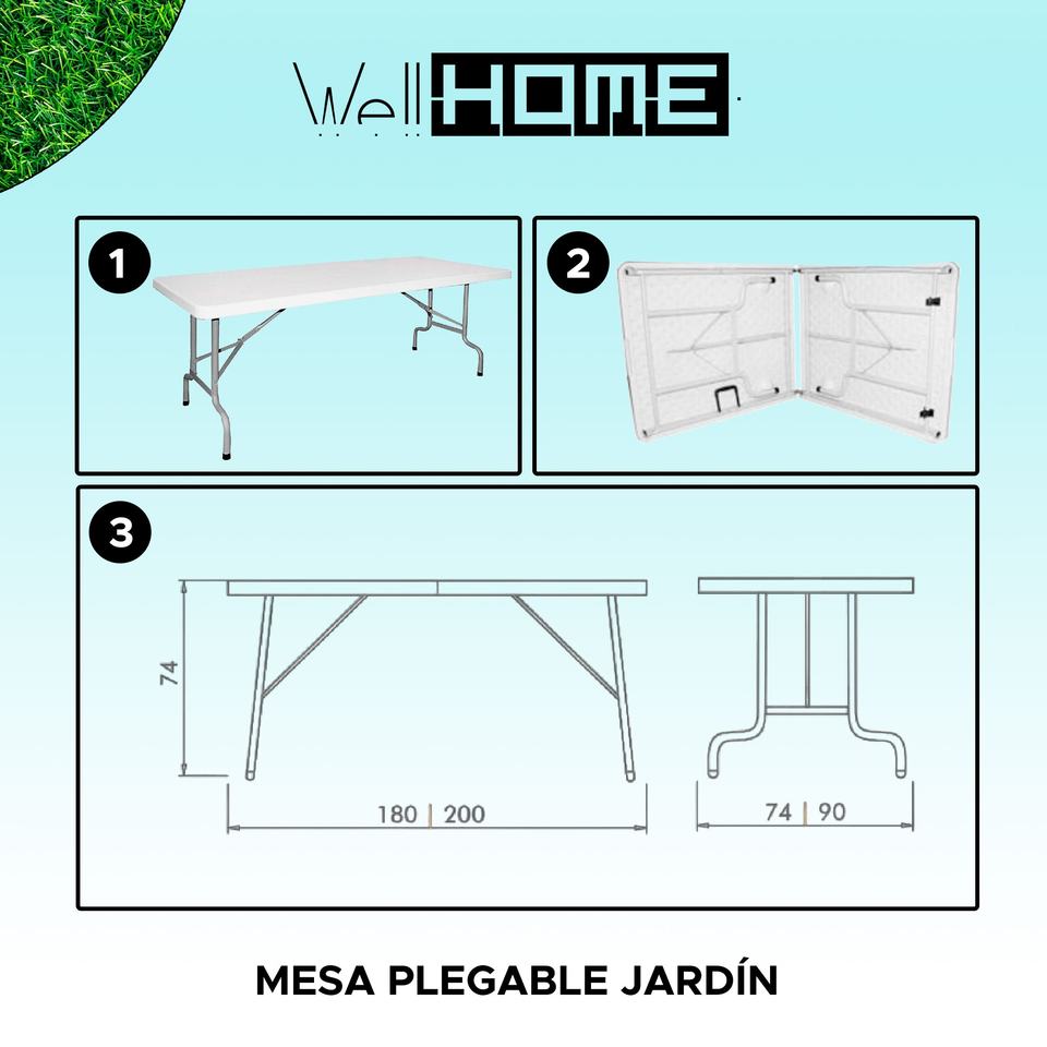 WELL HOME Outdoor Folding Polyethylene Table with Metal Frame 200x90x75cm