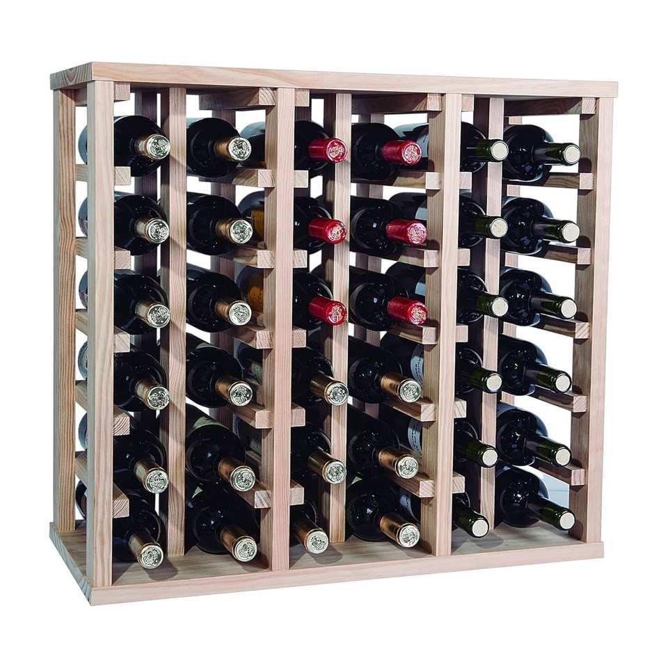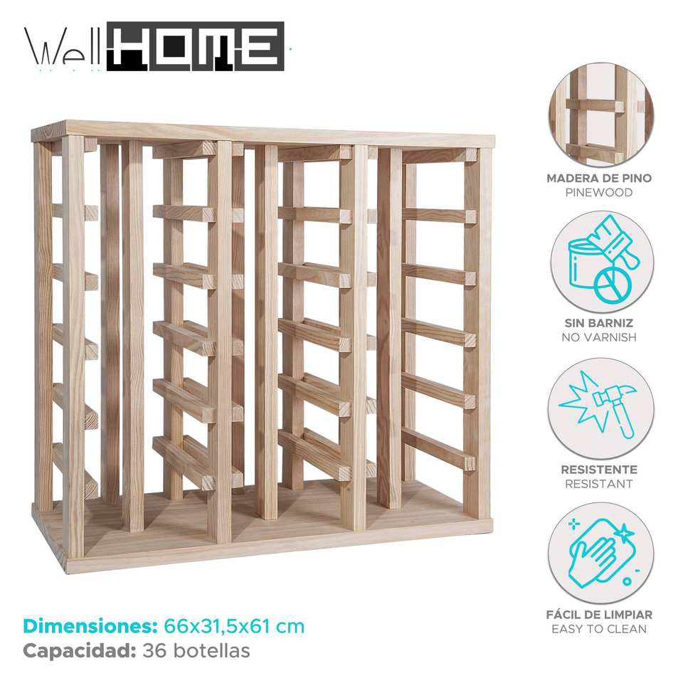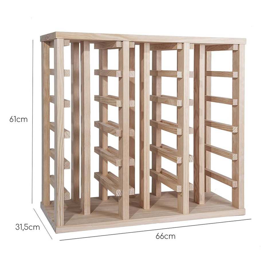 Portabottiglie in Legno di Pino WELL HOME con 36 Ripiani Non Verniciati