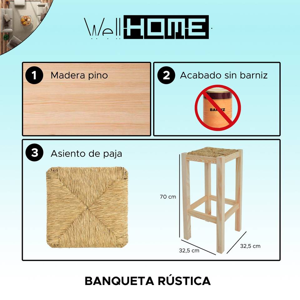 WELL HOME Rustic High Bar Stool Unvarnished Bench for a Classic and Elegant Look