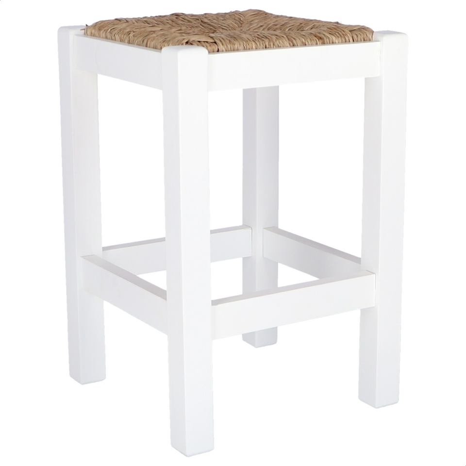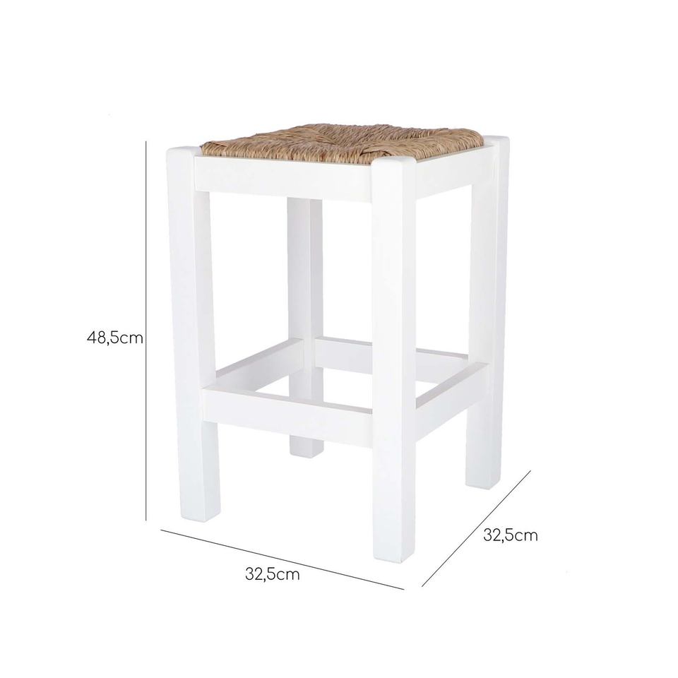 WELL HOME Rustic Wood Bench White Finish 32.5x32.5x48.5 cm Low Stool or Ottoman