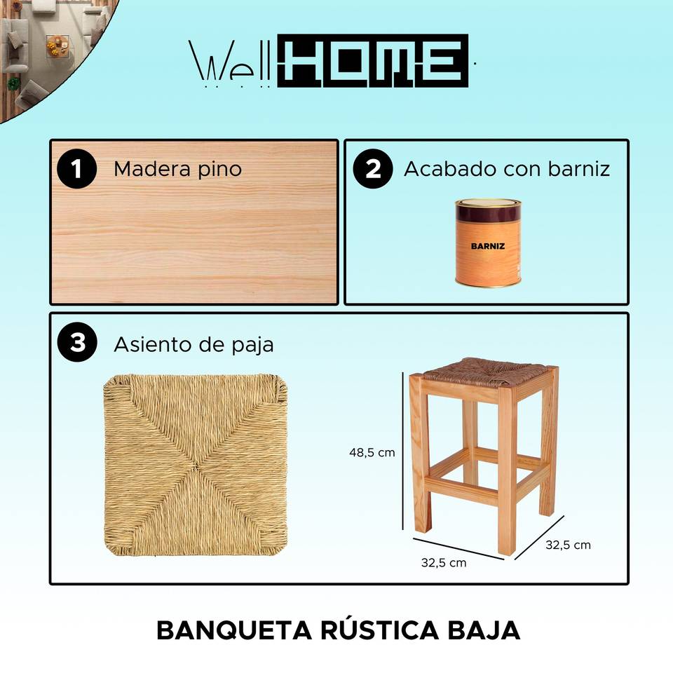 WELL HOME Panca da Giardino Rustica in Legno, Design Quadrato Basso con Finitura Verniciata, Dimensioni 32.5x32.5x48.5 cm