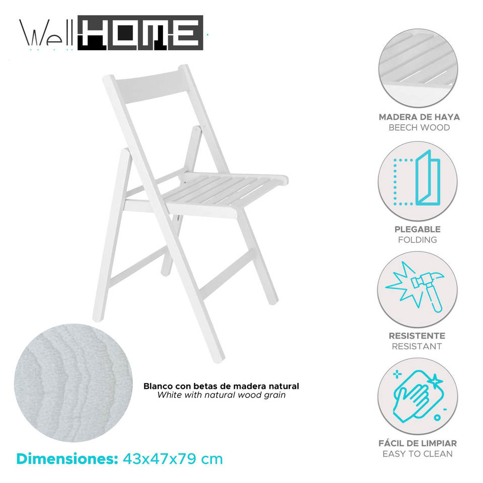 WELL HOME Set di 4 Sedie da Giardino BAS Bianche, Dimensioni 43x47x79cm