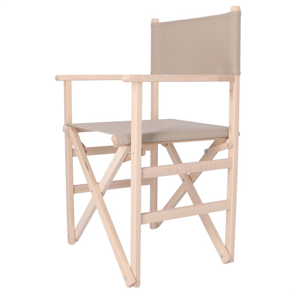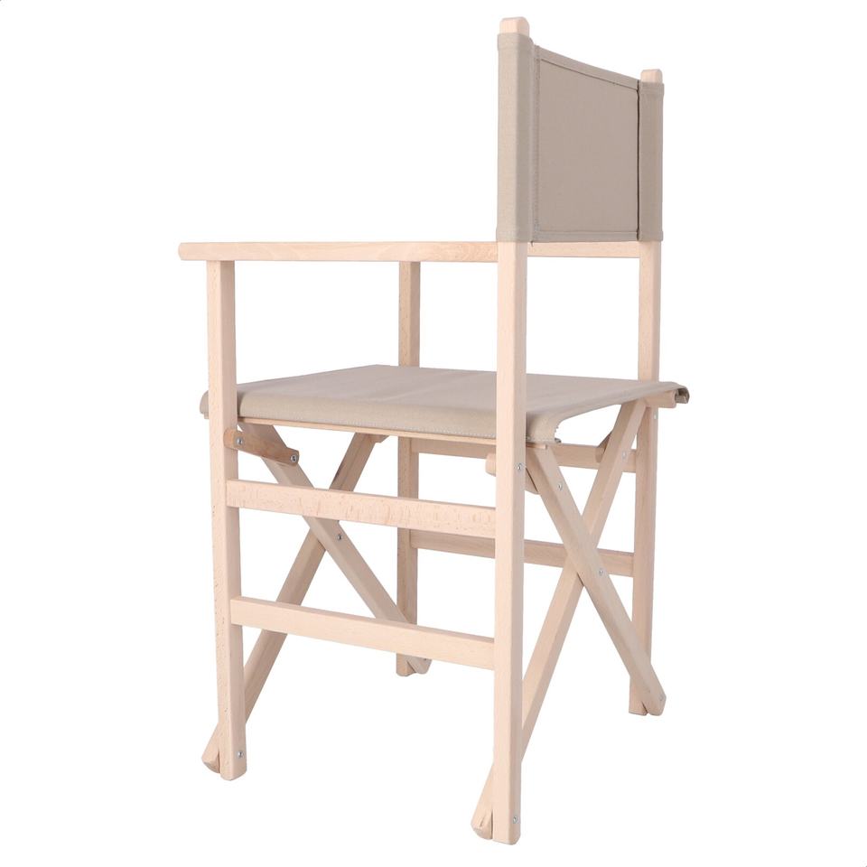 WELL HOME Stone Grey Canvas Director's Chair 51x46x86 cm Beech Wood with Unvarnished Finish