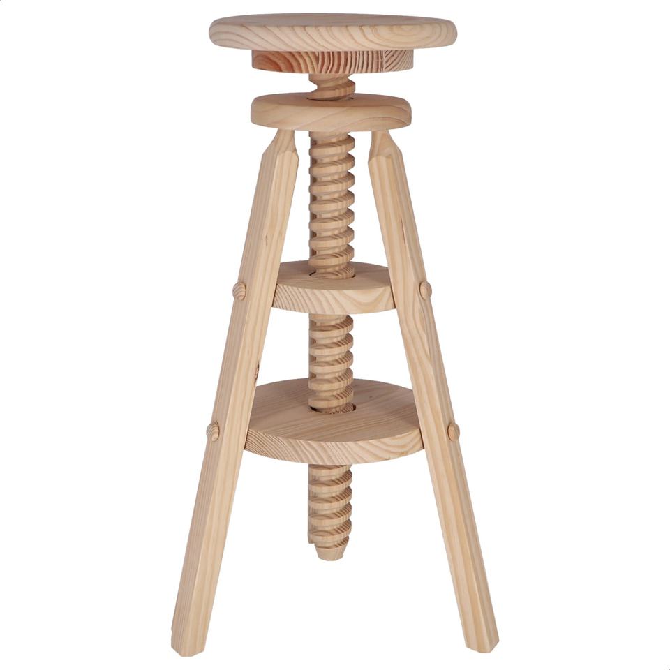 Sgabello Girevole in Legno Non Verniciato WELL HOME 29x29x90 cm, Sgabello da Bar