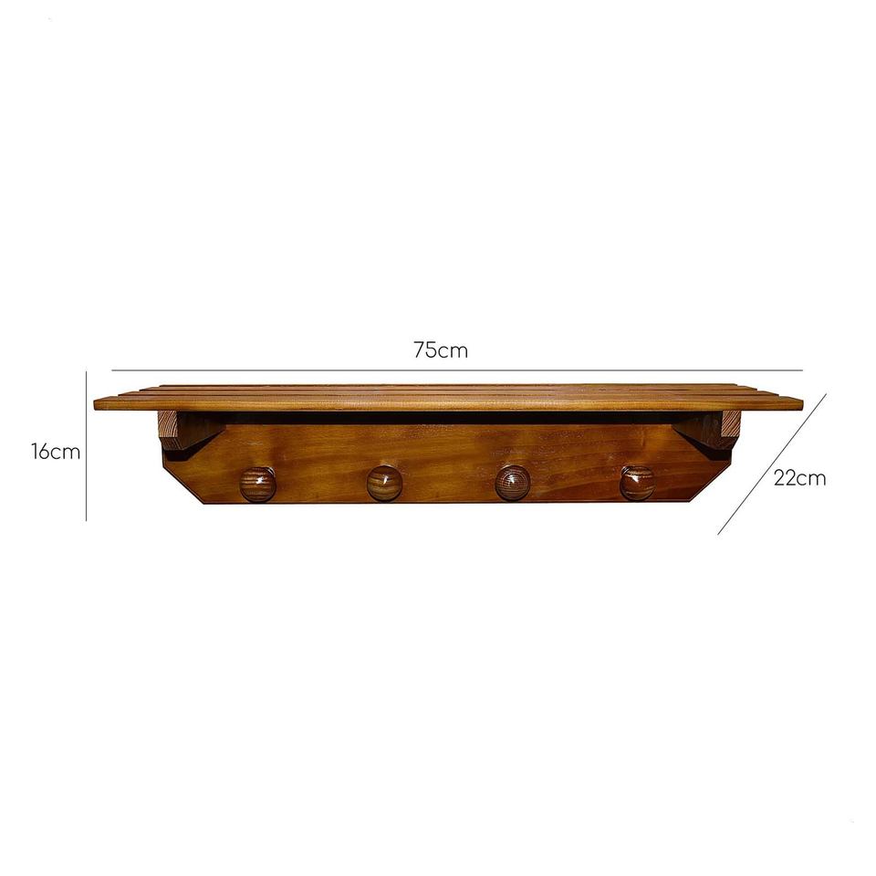 WELL HOME Walnut Finish Wooden Hanger and Shelf with 4 Knobs 55x22x16 cm Wall Shelves