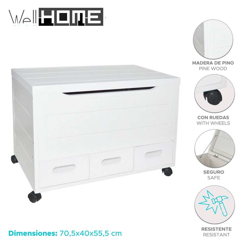 WELL HOME White 3-Drawer Storage Chest 70.5x40x55.5cm Dressers