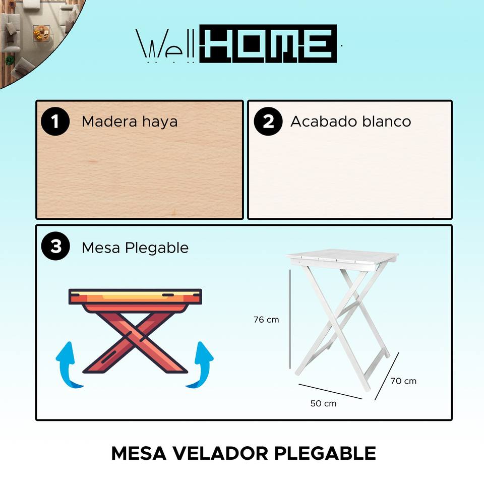 WELL HOME White Finish 70x50x76 cm Beechwood Folding Side Table Nightstand