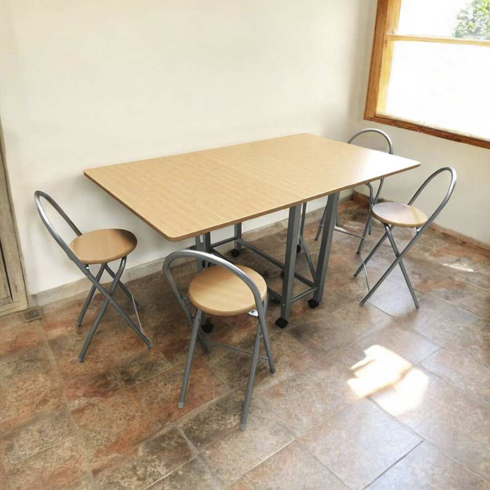 Set WELL HOME con Tavolo in Legno e 4 Sgabelli, Design Ispirato ai Libri per Giardino