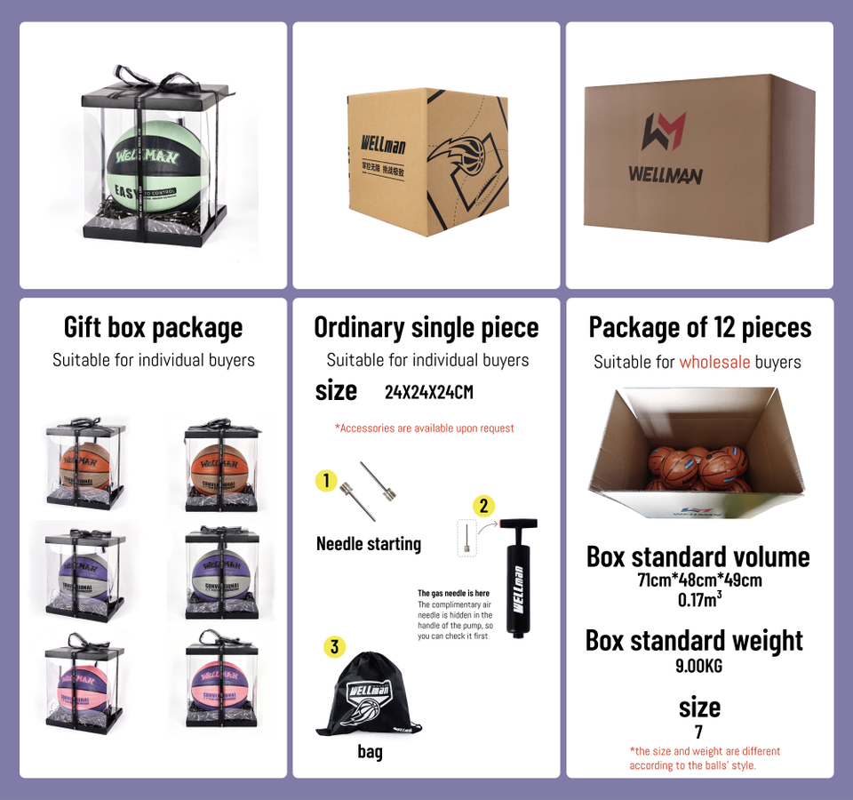 WELLMAN Official 6 High Elasticity Custom PU Leather Basketball Model MWMB797-1 Zhejiang Factory Direct Sale Logo Training
