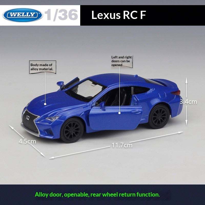 WELLY 1:36 Modellino Auto in Metallo Pressofuso Lexus RC F, Giocattolo a Retrocarica per Bambini, Regalo da Collezione, Vendita all'Ingrosso