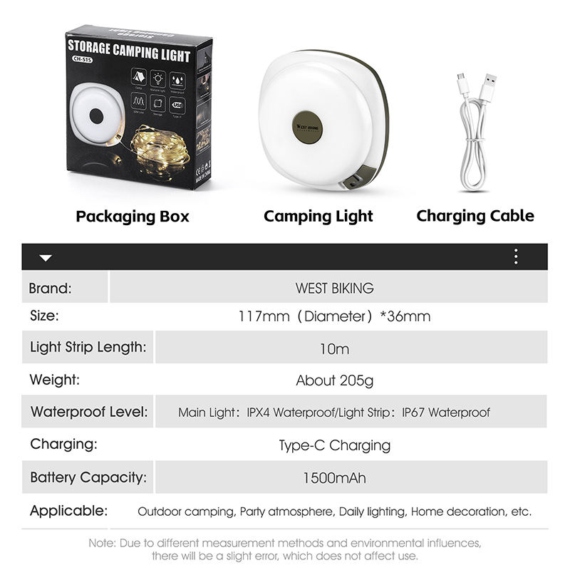 WEST bike nuova batteria ricaricabile di emergenza impermeabile piccola catena di luce da campeggio all'aperto Usb porta pieghevole luci