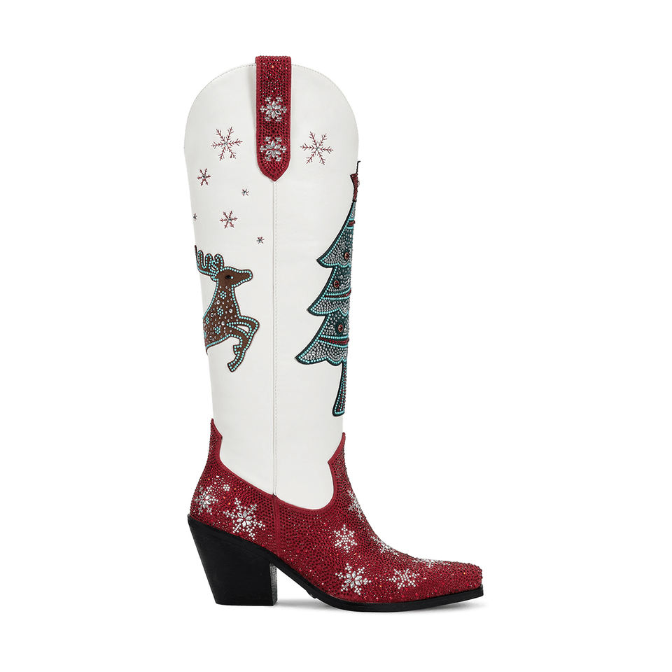 WETKISS scarpe invernali personalizzate con tacco grosso stivali alti al ginocchio stivali da Cowboy con strass bianco stivali da Cowgirl occidentali per natale