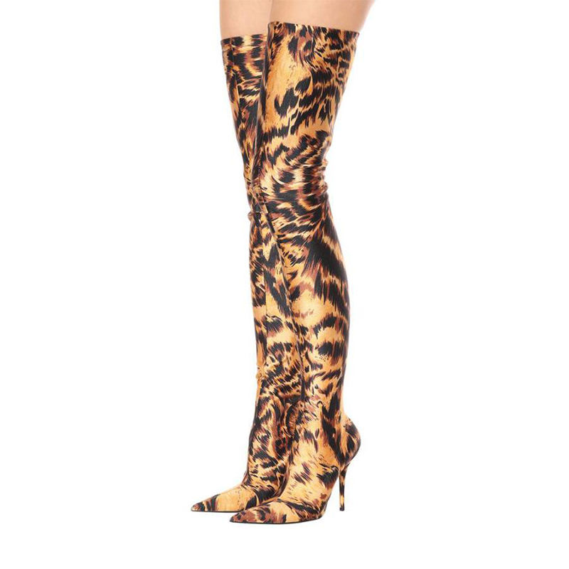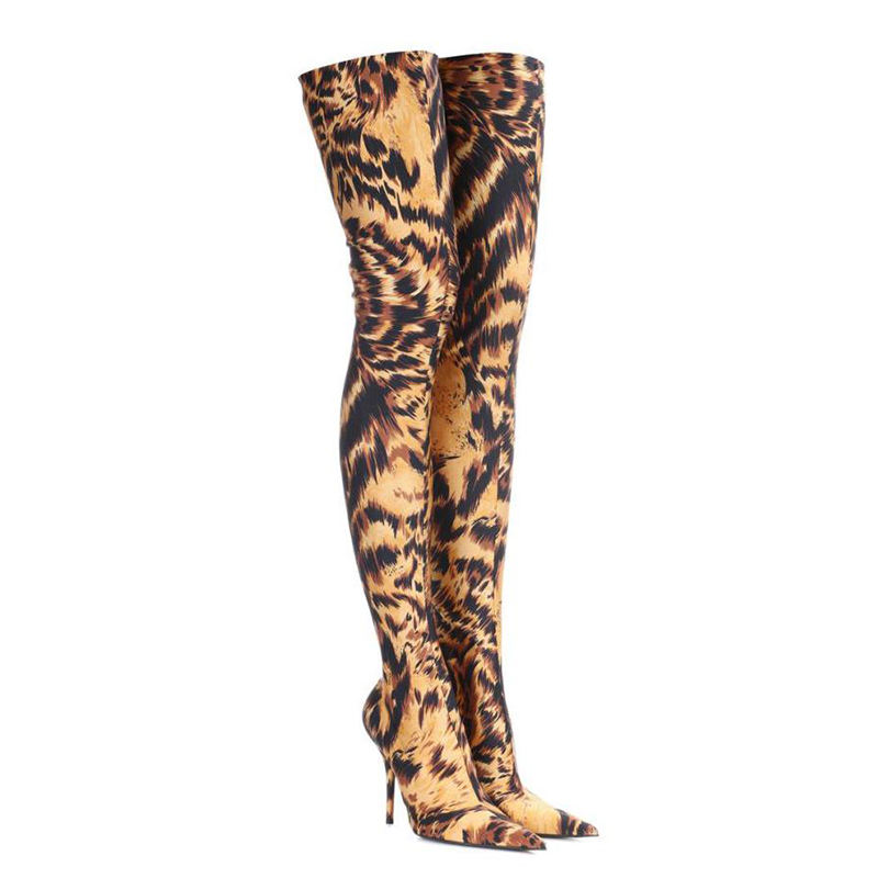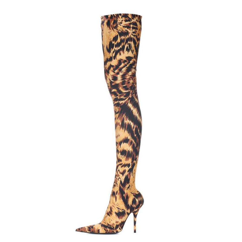 Nome del prodotto:Lady Tiger Stampa di Alta Della Coscia Stivali