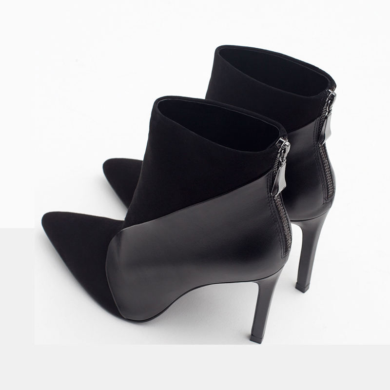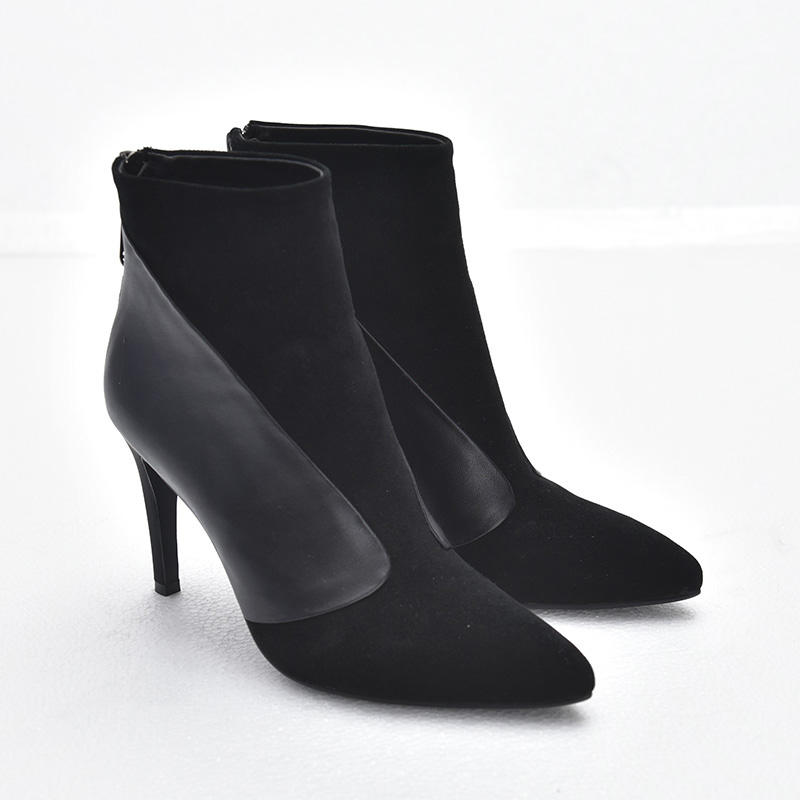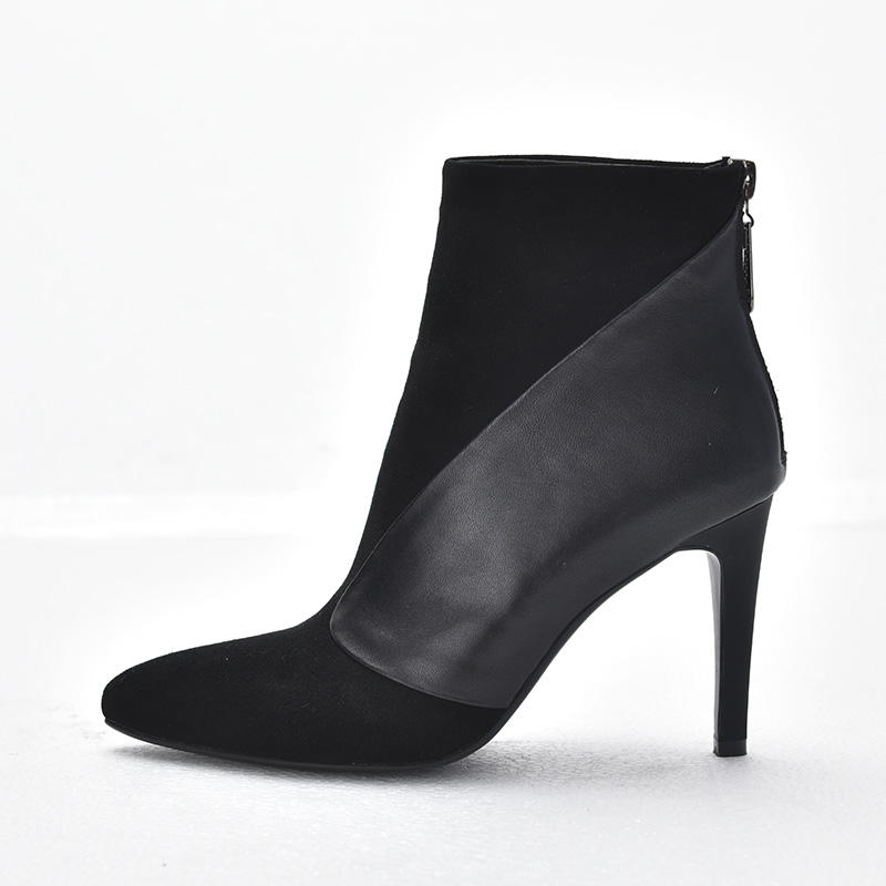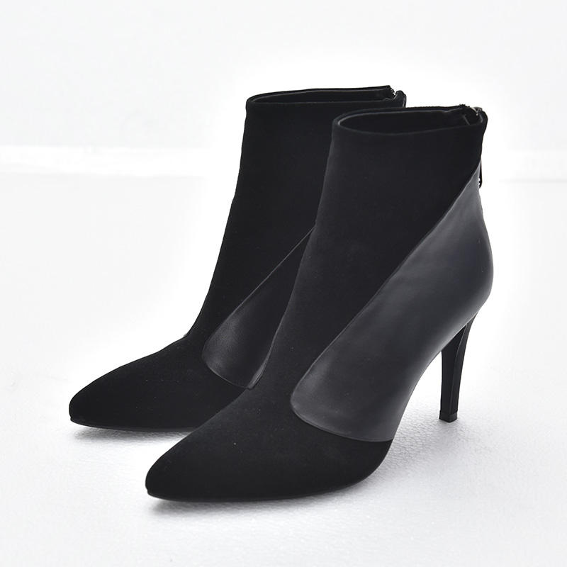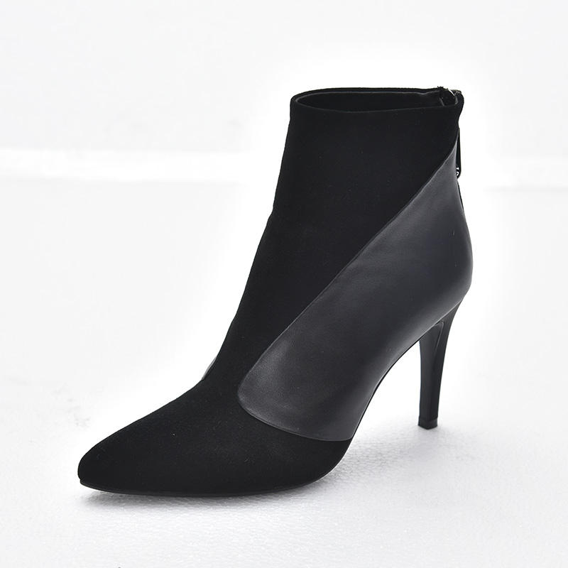 WETKISS Wholesale Handmade Leather Suede Boots Black Fashion Ladies Ankle Booties Pointy High Heels Women Ladies Winter Boots