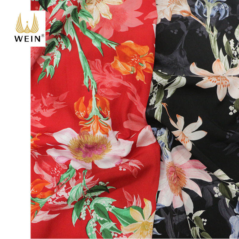 WI-B20 elegante stampa floreale estate Faille crêpe tessuto 100% poliestere abito Midi per le donne ragazze doppia faccia per il matrimonio