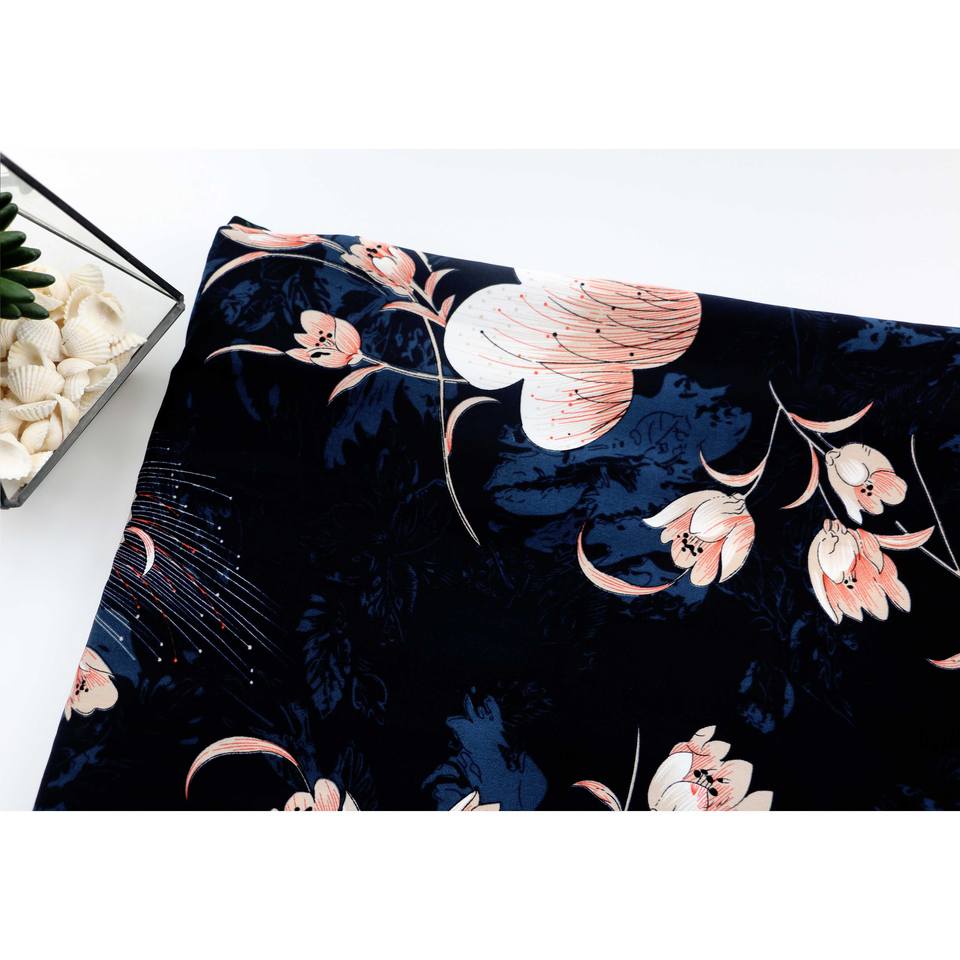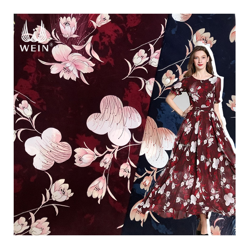 Tessuto Crepe Giapponese WI-D01 con Stampa ad Acqua di Grandi Fiori, Servizio di Stampa Personalizzata su Tessuto per Abiti e Abbigliamento