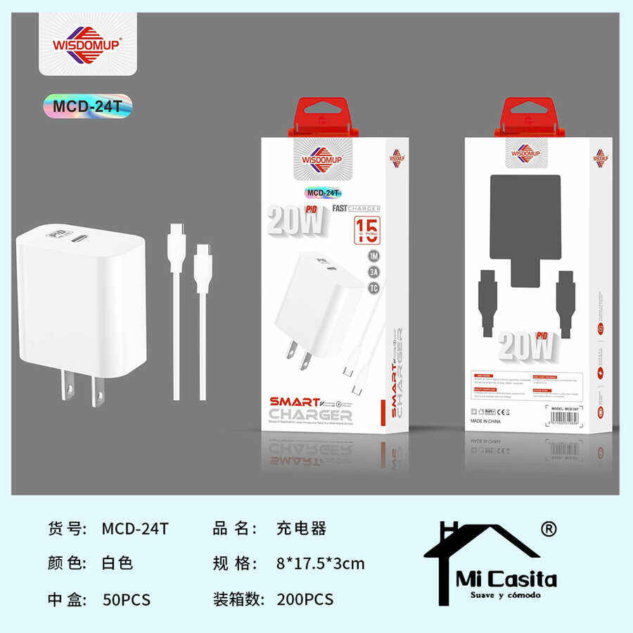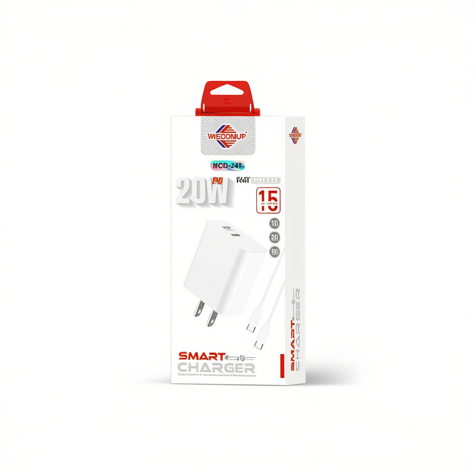 Caricatore Intelligente WIEDOMUP 20W PD a Porta Singola Tipo C, Adattatore di Ricarica Universale