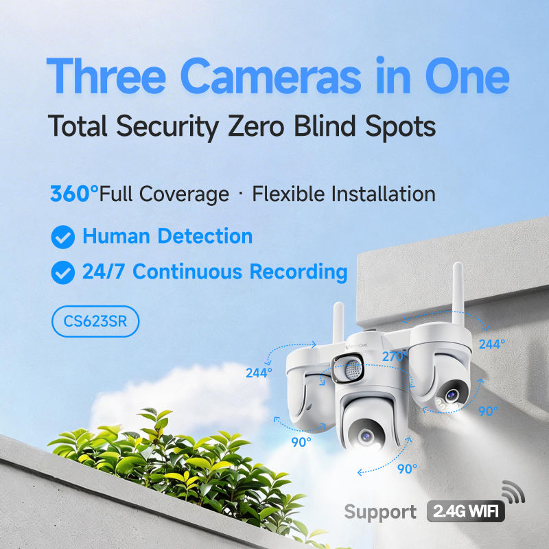 Telecamera di Sicurezza WIFI 9MP HD a Tre Obiettivi Vstarcam CS623SR O-KAM Pro con Tracciamento AI del Movimento, Telecamera PTZ CCTV per Esterni, Vendita all'Ingrosso