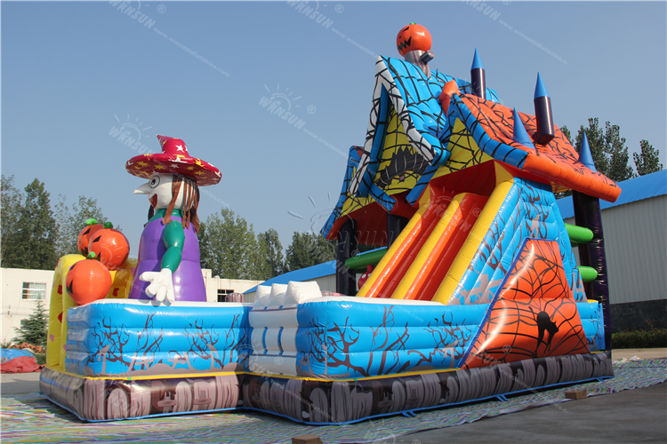 WINSUN Castello Gonfiabile a Tema Strega per Halloween, Casa Rimbalzante Super Combo