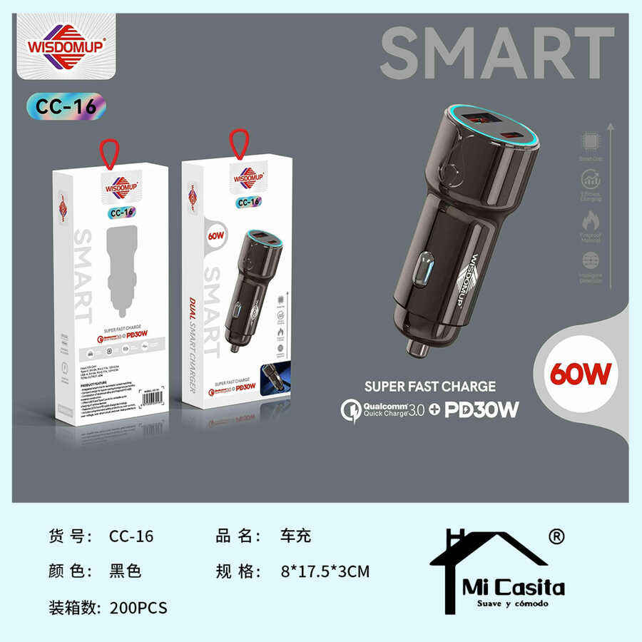 Caricabatterie per Auto WISDOMUP CC-16 60W Ricarica Rapida Intelligente USB Tipo A 12-24V con Indicatore LED